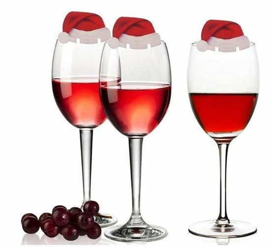 Met deze kerstmuts versiering voor glazen maakt u het kerstdiner helemaal compleet!
