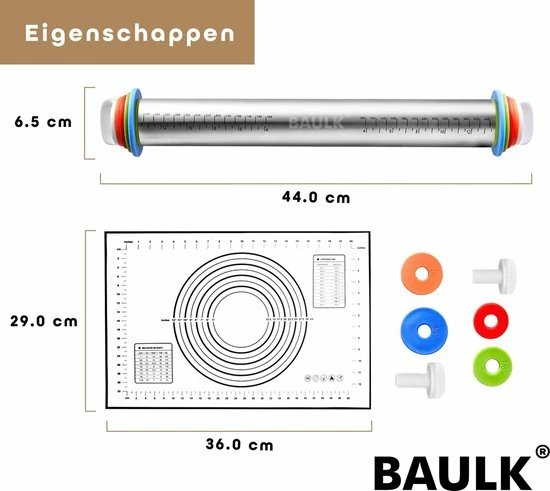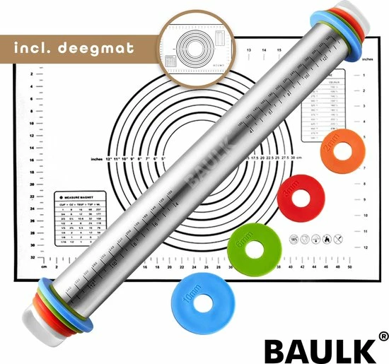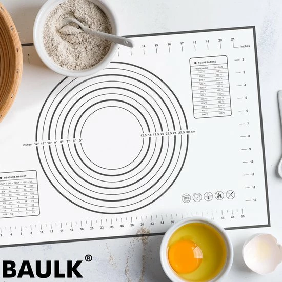 De bijgeleverde anti-kleefmat is gemaakt van hoogwaardige siliconen en is BPA vrij. Bestendig voor temperaturen tot maximaal 200°C. Door zijn maataanduidingen is het rollen van het perfecte deeg, nog nooit zo gemakkelijk.