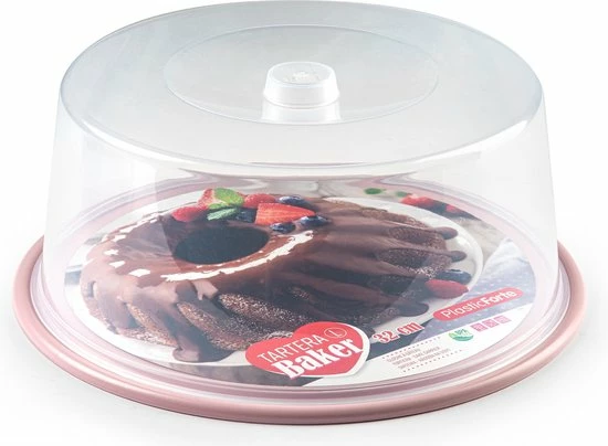 Forte Plastics Ronde Taart/gebak Bewaardoos Transparant 32 X 15 Cm Met Roze Bodem – Taart Bewaren/serveren In Box/doos