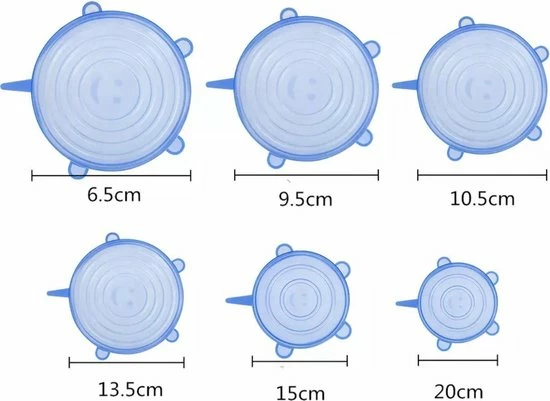 De siliconen deksels passen op alle soorten vormen Ovaal, rechthoek, rond, vierkant, etc) en zijn de perfecte sluiting voor vershoudbakjes. De siliconen zijn flexibel en kunt u uitrekken tot bijna 40% van de oorspronkelijke grootte.