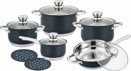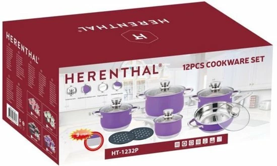 Ben jij gek op lekker en gezond koken? Met deze 12-delige luxe Herenthal pannenset heb jij elke pan in huis die je nodig hebt. Of je nu toe bent aan een nieuwe pannenset of dat je op jezelf gaat wonen, ze komen altijd van pas.Herenthal verkoopt verschillende keukengerei en staat bekend om zijn top kwaliteit. Ook de kwaliteit van deze 12-delige pannenset is te vergelijken met horeca pannen. De pannen zijn gemaakt van 18/0 roestvrij edelstaal. De duurzame buitenkant gaat jaren mee. De set bestaat uit maar liefst 5 verschillende pannen. Elke pan heeft een bijpassende glazen deksel. Van een kleine sauspan tot 7 liter grote soeppan, je krijgt het allemaal in deze set. Elk van de pannen is geschikt om mee te koken op alle warmtebronnen, ook op inductie. Dus mocht je ooit een andere keuken willen met een ander fornuis, geen probleem, deze pannen kun je nu en in je toekomstige keuken gebruiken! Met deze pannenset haal je topkwaliteit in huis voor een super lage prijs!