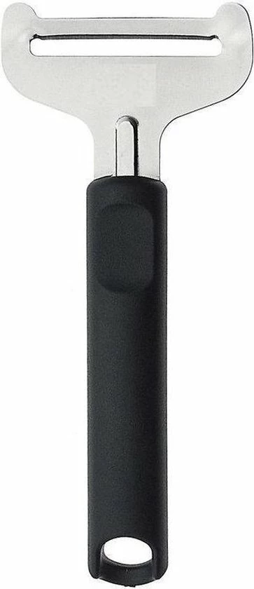 Roestvrijstalen kaasschaaf, speciaal voor het schaven van jonge, zachte kaas. Met comfortabel kunststof greep.