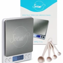 Bestel jouw precisie keukenschaal met maatlepel set vandaag en weeg nauwkeurig af tot de laatste gram!