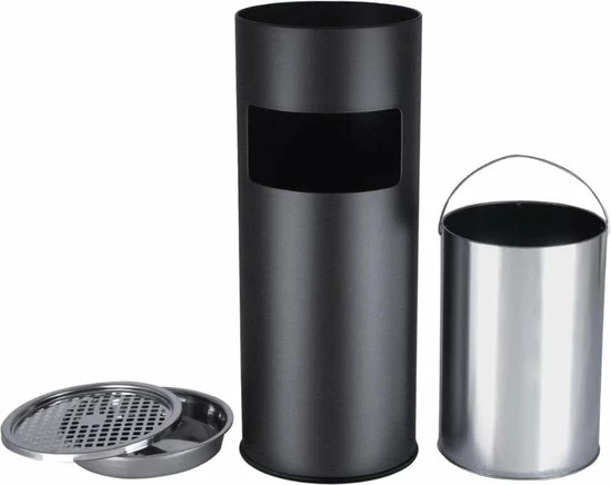 De vuilnisbak heeft een uitneembare binnenemmer van verzinkt plaatstaal. Eenvoudig te legen bij een afvalcontainer. Klasse prullenbak doet zijn werk goed. De buitenemmer heeft een grote inhoud van ongeveer 30 liter en de binnenemmer 12,3 liter.