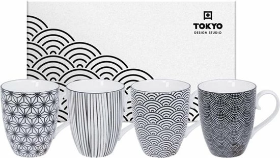 Tokyo Design Studio – Nippon Black – Set Van 4 Mokken 380 Ml – Verpakt In Luxe Geschenkdoos